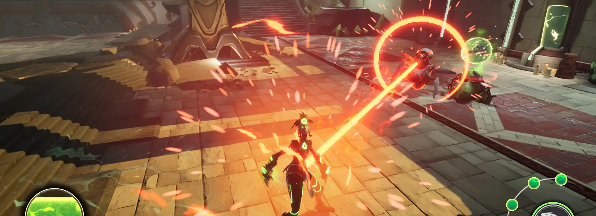 L’approche proposée est évaluée par le biais d’un jeu de “combat” dynamique en arène 3D offrant un univers riche où le joueur contrôle un personnage qui contrôle une matière fluide pour attaquer des ennemis (araignées ou crabes). Le jeu peut être téléchargé ici. Les performances de notre architecture ont été analysées avec 2 situations: